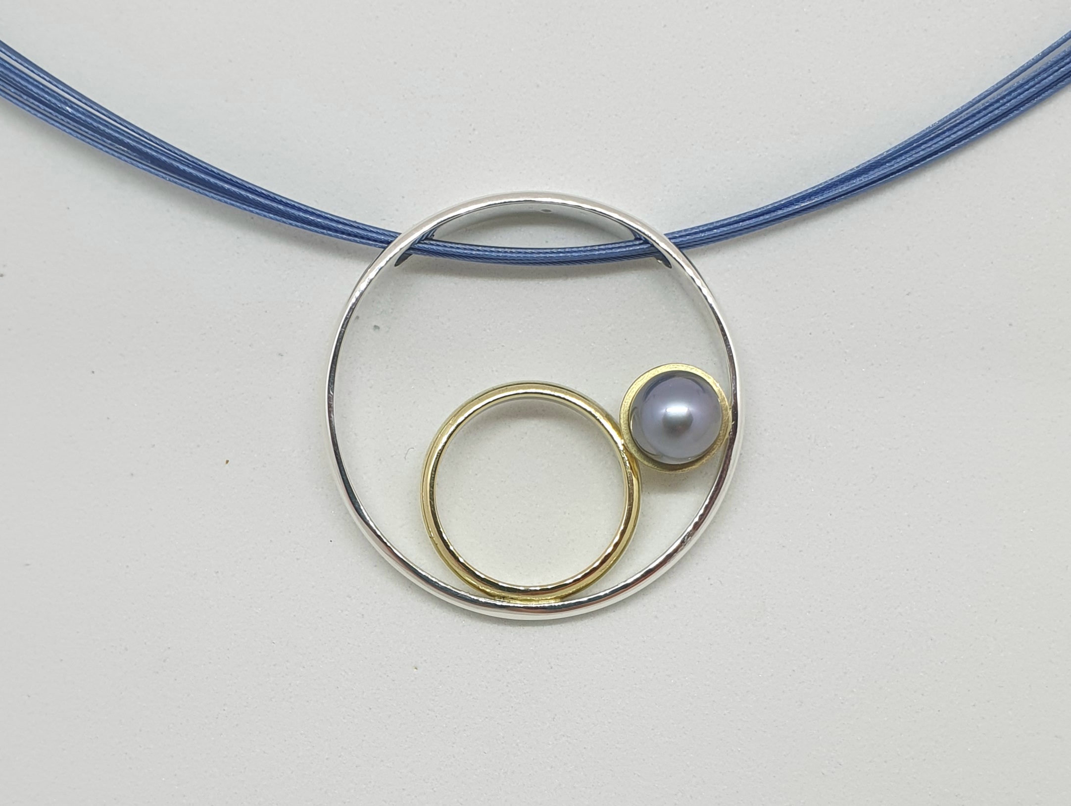 Zilveren hanger met de gouden trouwringen van haar ouders.